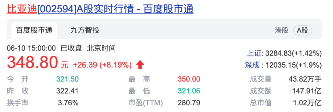 6月10日,比亚迪终于站上了万亿市值的台阶。