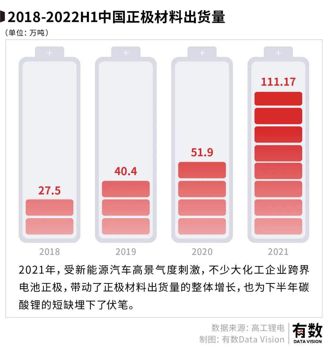 过去三年,中国正极材料出货量从40万吨暴涨至111万吨,产能扩张至170万吨,对碳酸锂的需求也翻了几倍。