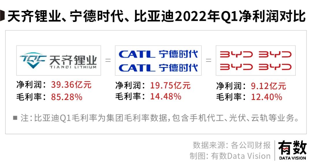 今年上半年这轮涨价潮中,受益*的是一家名叫天齐锂业的公司。单看*季度,天齐锂业的净利润大概相当于两个宁德时代、四个比亚迪。