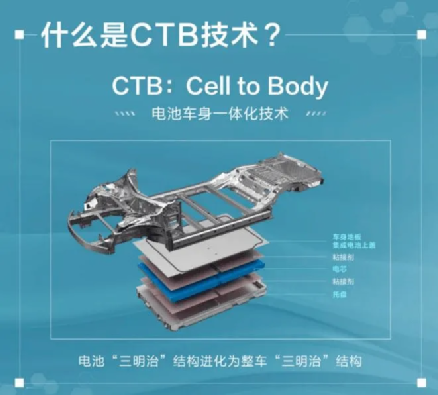 所以,真正在这方面潜力最大的,是同时造车、造电池的厂商。某厂商甚至推出了更激进的方案:CTB。让电池成为车身的一部分。