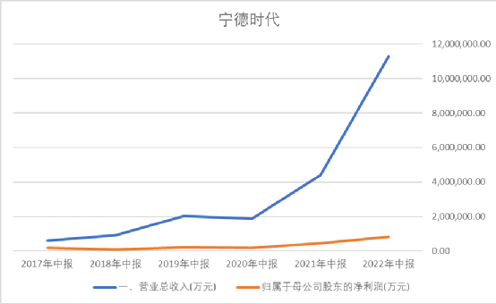 2022年半年报显示,宁德时代实现营业收入1129.7亿元,同比增长156.3%,实现归母净利润81.7亿元,同比增长82.2%。