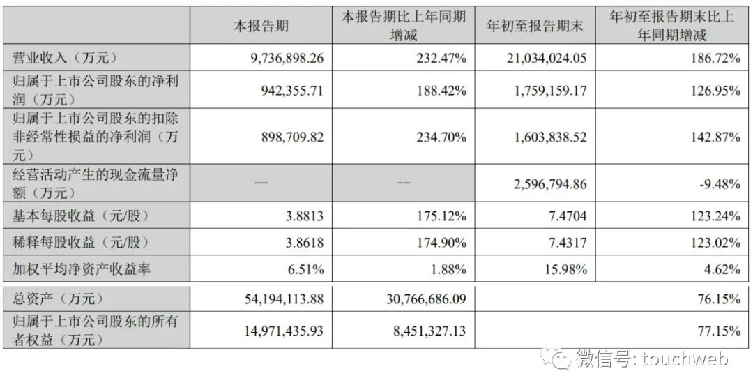 宁德时代第三季度的净利就大幅超过了2021年全年,且比上年同期要多赚超60亿元。