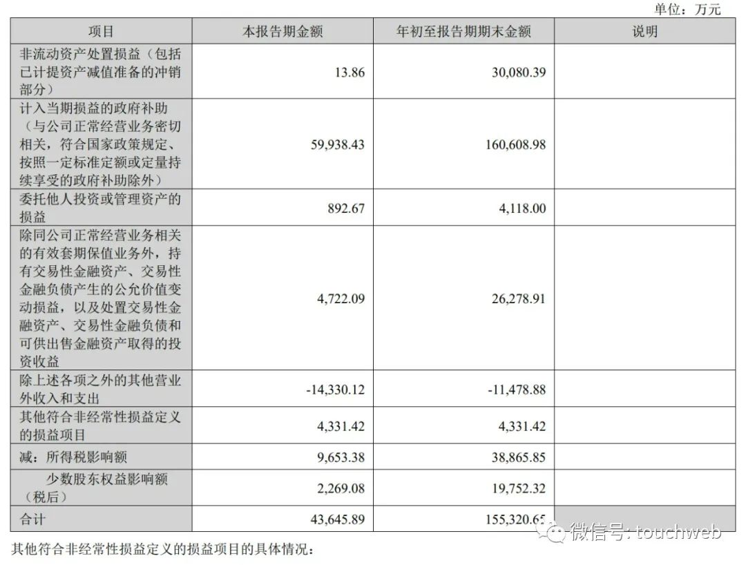 宁德时代2022年前三个季度计入的政府补贴达16.06亿元,其中,第三季度计入5.99亿元。