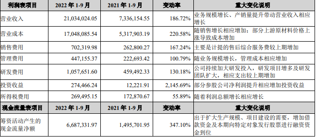 IT之家了解到,今年 1~9 月,宁德时代业务规模增长、产销量提升带动营业收入相应增长,前三季度营收 2103.4 亿元,同比增长 186.72%。