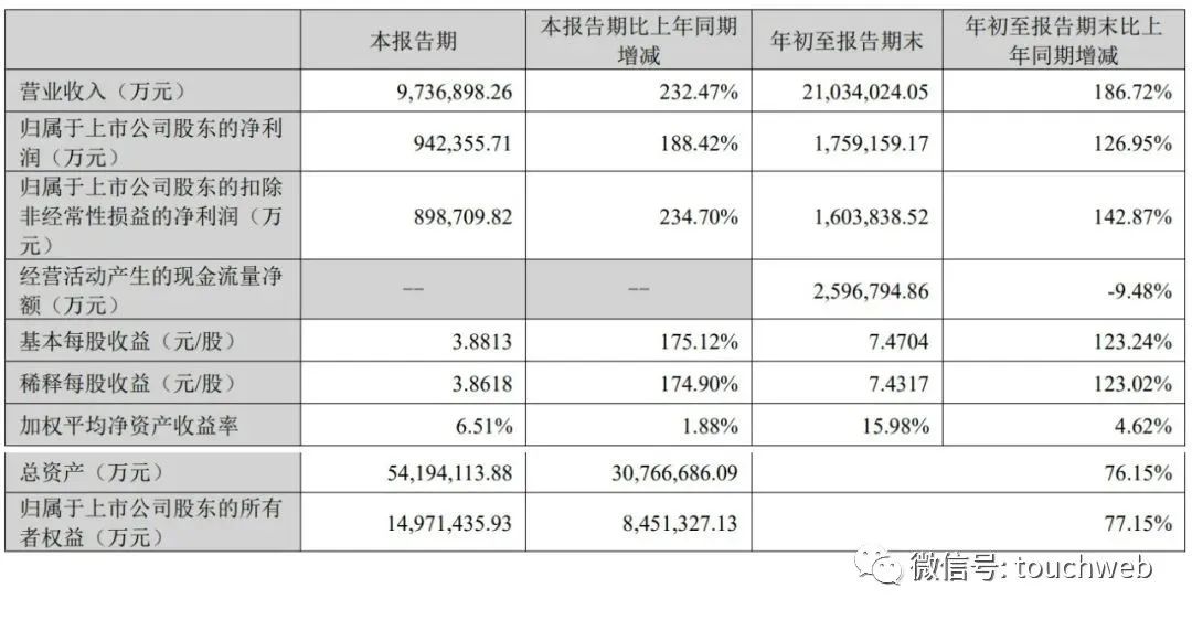 宁德时代第三季度的净利就大幅超过了2021年全年,且比上年同期要多赚超60亿元。