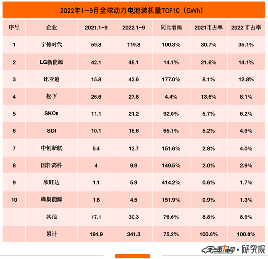 总体来看,9月仍然是中国车企领跑全球动力电池市场。虽然9月全球动力电池装机量再创新高,但LG新能源市占率的大幅提升,使得中国企业的市占率均有所下降。