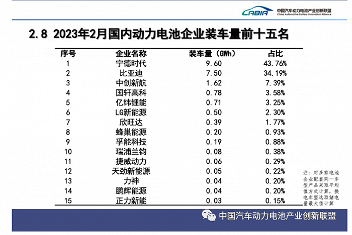 中创新航(03931.HK)继续保持全国第三,今年2月该公司装车量为1.62 GWh,市占率为7.39%,为近八个月来的新高。