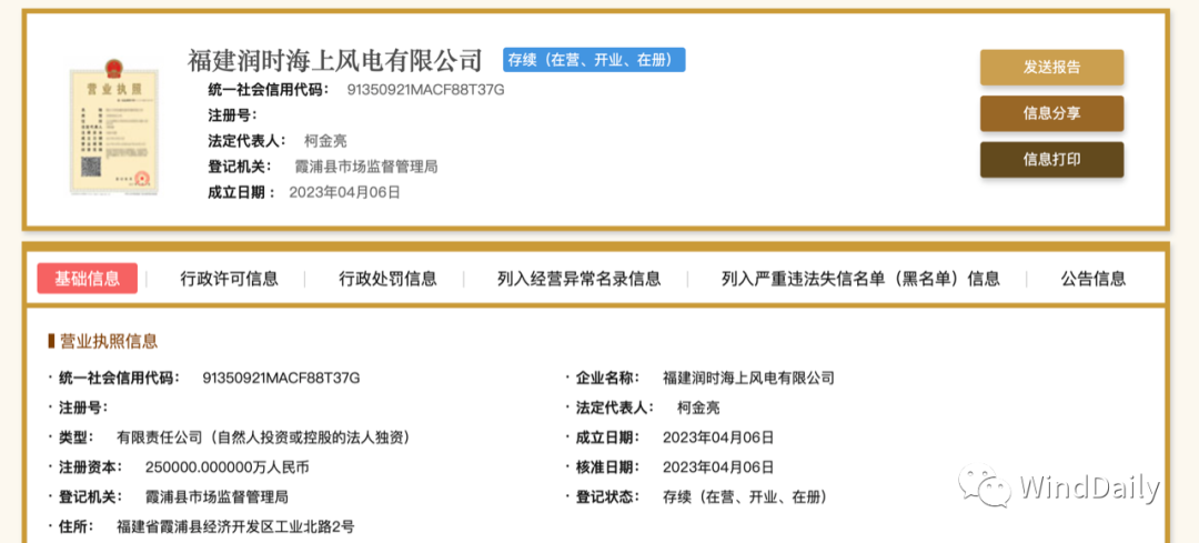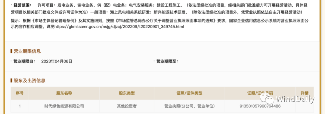 宁德时代海上风电公司具体信息如下: