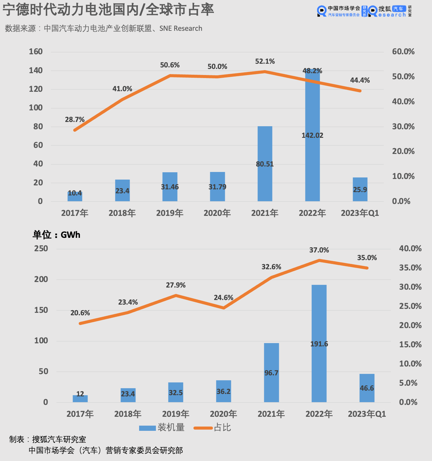 而根据中国汽车动力电池产业创新联盟最新数据,2023年一季度,宁德时代动力电池以29.25 GWh的装车量排名第一,市占率已降至44.4%。