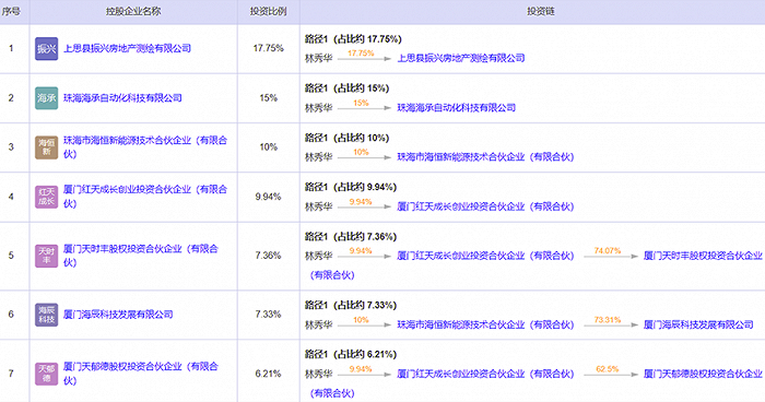 林秀华的投资方向包括房地产、工业自动化、合伙制投资基金等。