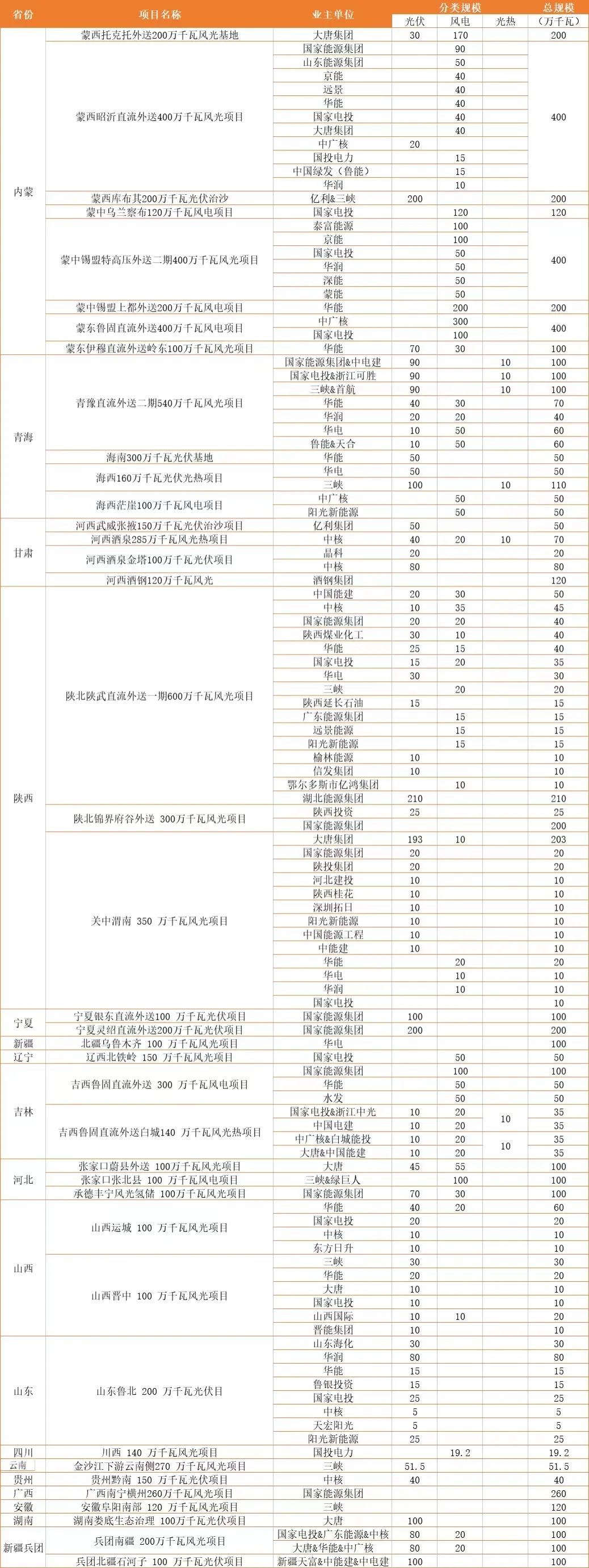 开发企业包括华电、中石油、国家能源集团等。