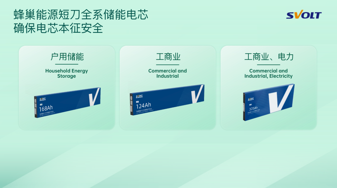 蜂巢能源发布了应用于电力、工商业和家庭三大场景的短刀全系储能电芯及产品,其中包括L500型325Ah电力储能专用电芯、L600型124Ah工商业储能专用电芯、L600型168Ah家庭储能专用电芯,以及厚度仅有66mm的全球超薄家庭储能、99KWh工商储能、325Ah液冷电力储能等,打造全新储能系统产品解决方案。