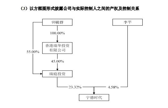目前曾毓群旗下的上市公司,主要是宁德时代(300750)。而根据宁德时代财报中披露的股权结构,曾毓群通过瑞庭投资持股为23.32%。按这个比例计算出来的结果,和榜单上差不多。