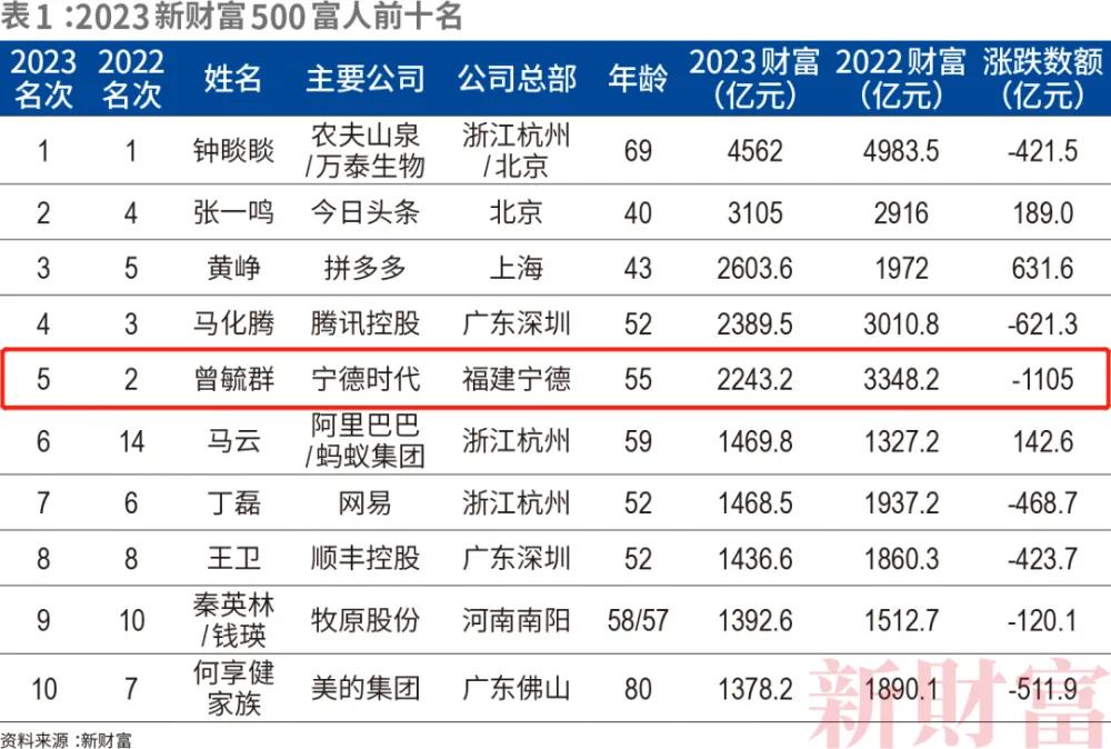 宁德时代创始人曾毓群,身家剧减1100亿元。