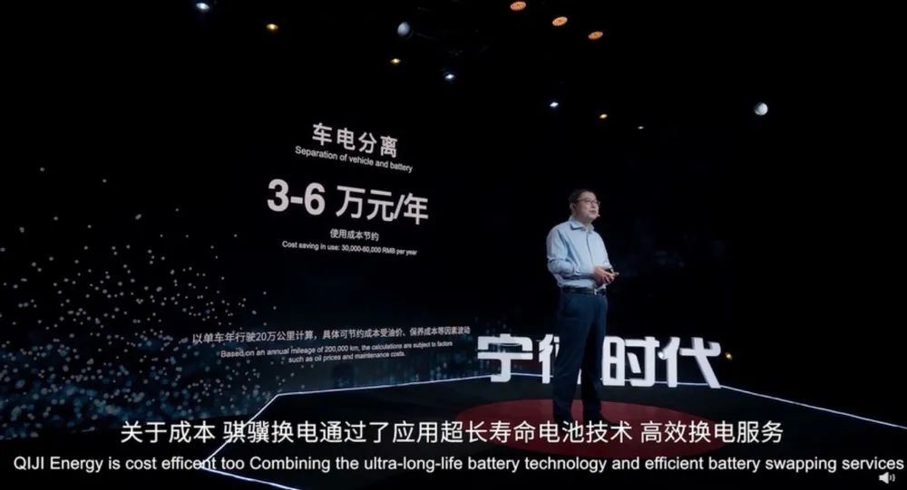 据介绍,骐骥换电块使用的是宁德时代第三代磷酸铁锂电池,这一电池组应用了无热扩散、CTP成组等技术,已经通过200多项安全测试,电池系统使用寿命可超过1.5万次。