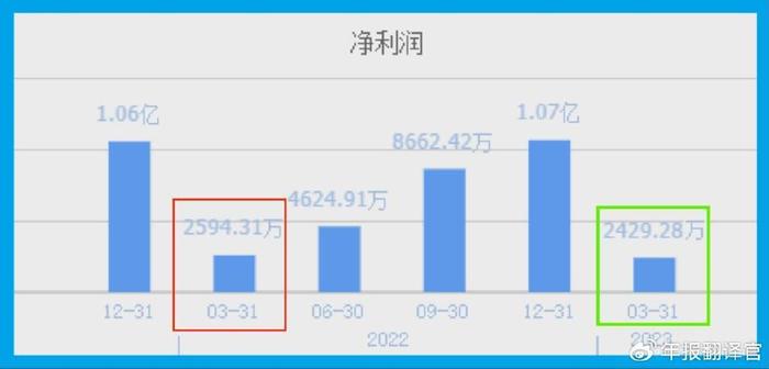 2022年第一季度,该企业的净利润为2,694万元。到了2023年第一季度,这家公司的净利润就降至2,430万元,同比下降了6%。