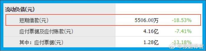在资产负债表中翻译官发现,该企业目前的短期借款只有5,506万元,同比还下降了16%。