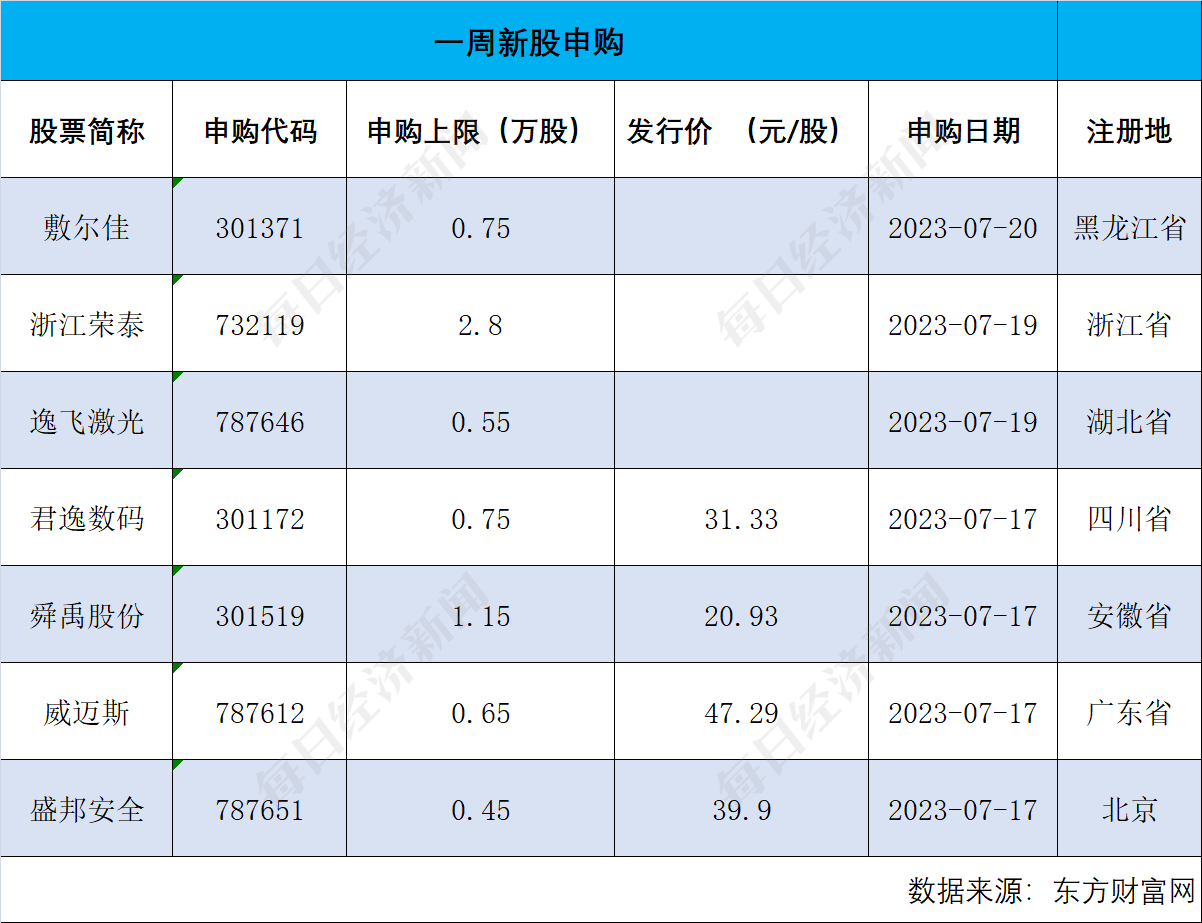 本周,A股市场有敷尔佳、浙江荣泰等7家公司将迎来申购。