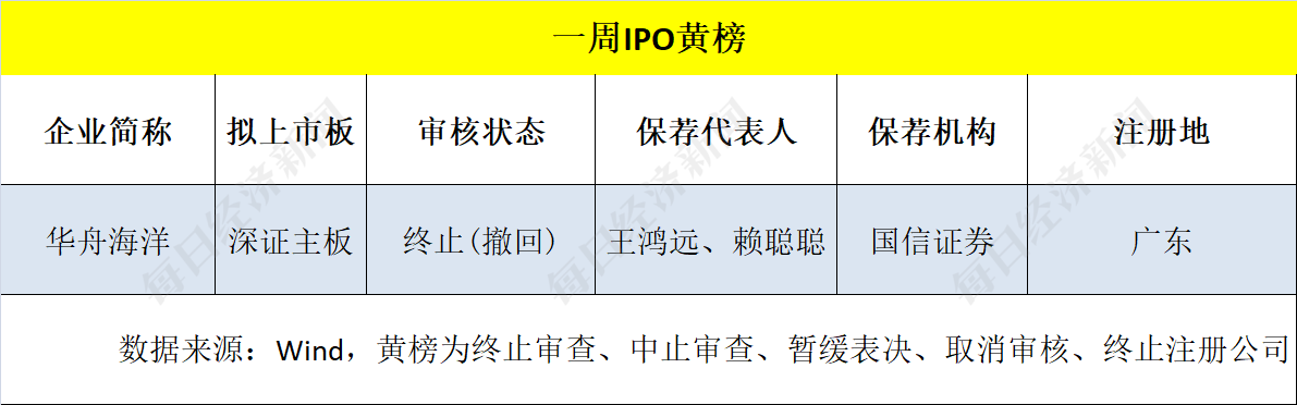 上周,华舟海洋入列“黄榜”,公司主动撤回IPO项目。
