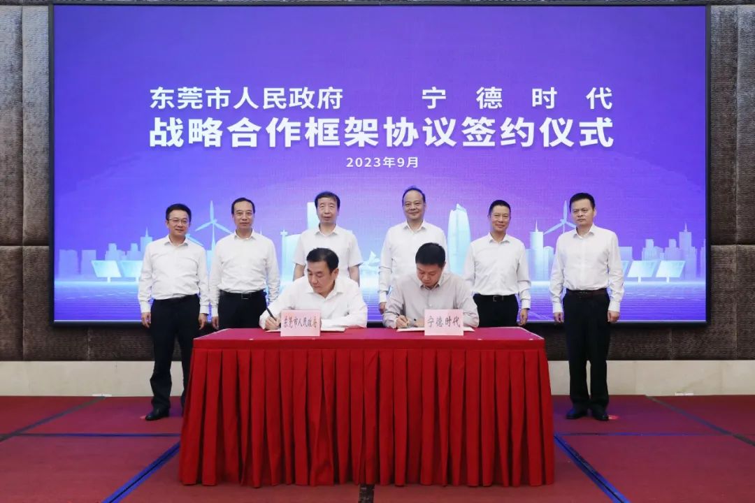 9月8日,东莞市政府与宁德时代签署战略合作框架协议。东莞市委书记肖亚非,市委副书记、市长吕成蹊,市委副书记、松山湖党工委书记刘炜,市委常委、副市长刘光滨;宁德时代董事长、总经理曾毓群,新能达董事长耿继斌,宁德时代首席客户官、市场体系联席总裁谭立斌等共同出席并见证了签约。签约前,肖亚非与曾毓群一行会谈。