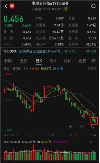 12月14日,两市震荡走弱。电池ETF(561910)收跌0.65%,盘中再创历史新低。宁德时代盘中创年内新低,股价逼近2021年3月低点。国轩高科、德方纳米、恩捷股份领跌成分股。基金获资金逆市抄底明显,此前获连续3日增仓,年内份额扩容近140%,引领同标的ETF。