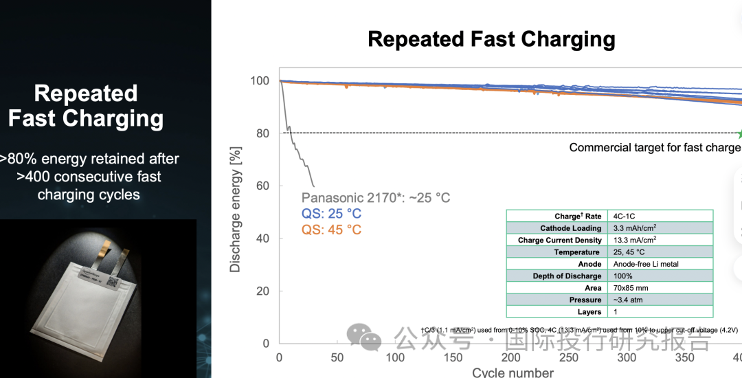 超出要求:QuantumScape 的固态电池实现了 1,000 多次充电循环,容量仍超过 95%。根据车型的不同,电动汽车可以行驶超过 500,000 公里,而不会出现任何明显的续航里程损失。