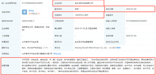 图说:1月4日,金乡润时风电有限公司和邹城润时风电有限公司同时成立来源:企查查