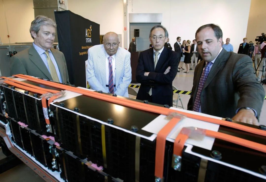前美国能源部部长朱棣文(右二)参观A123工厂