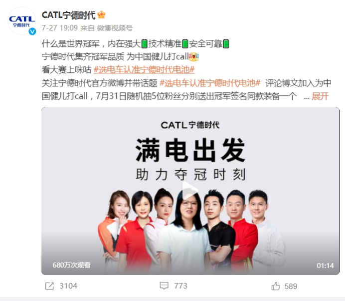 再加之正在如火如荼举办的奥运,宁王凭借“选电车认准宁德时代”一句广告语算是彻底在to C端打响了知名度。