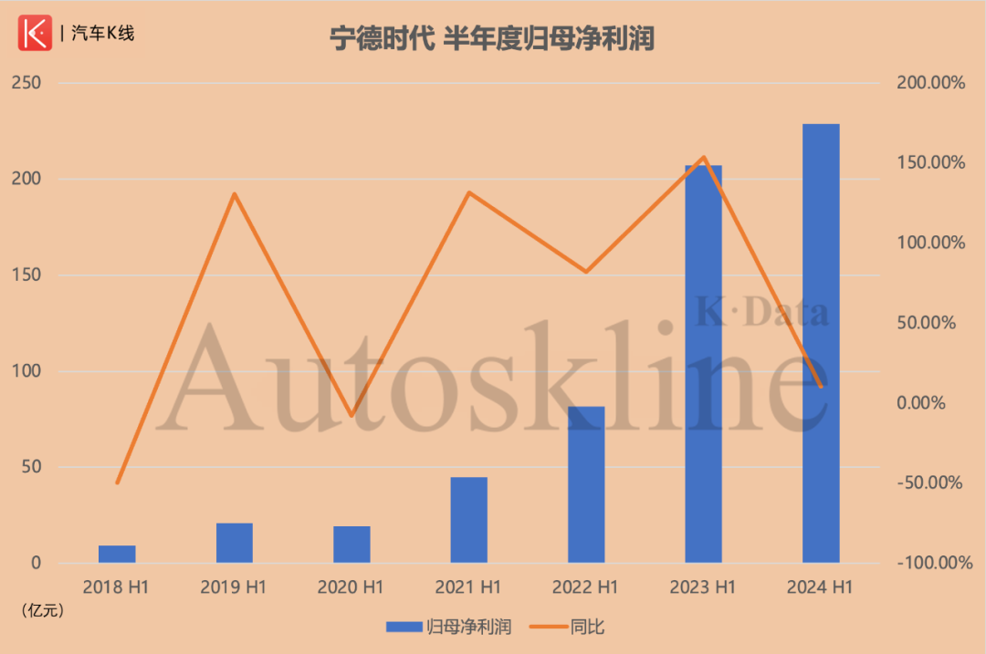今年上半年,宁德时代归母净利润高达228.65亿元,同比增长10.37%,扣非净利润首次突破200亿元,同比增长14.25%,达到200.54亿元。