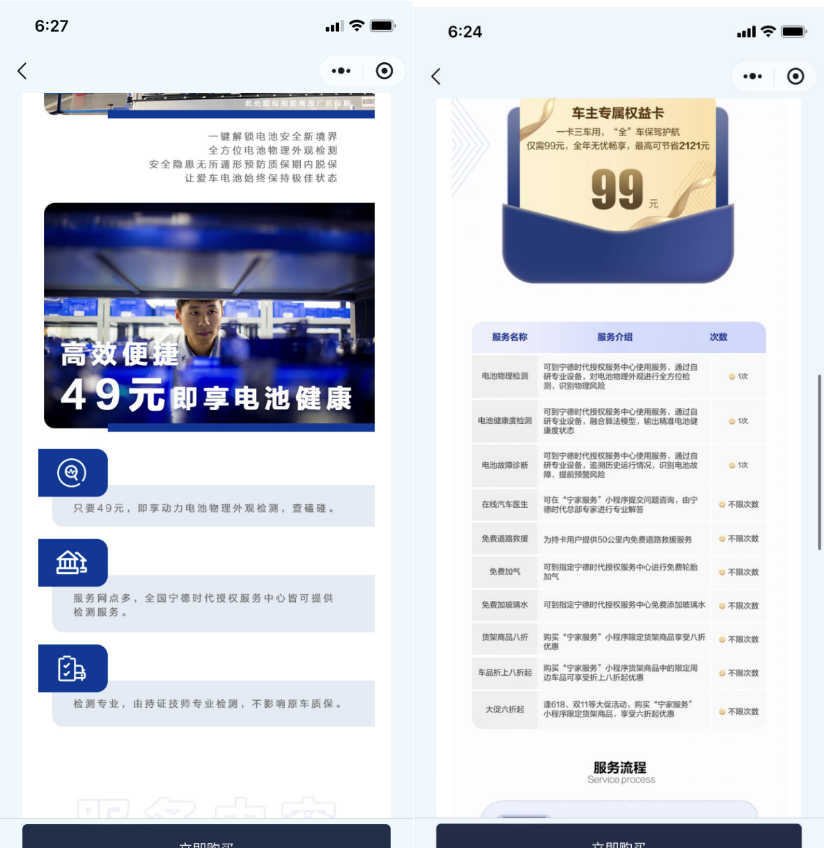 49元的“宁心权益包”极速检测包。主要用于动力电池物理外观检测,查磕碰;