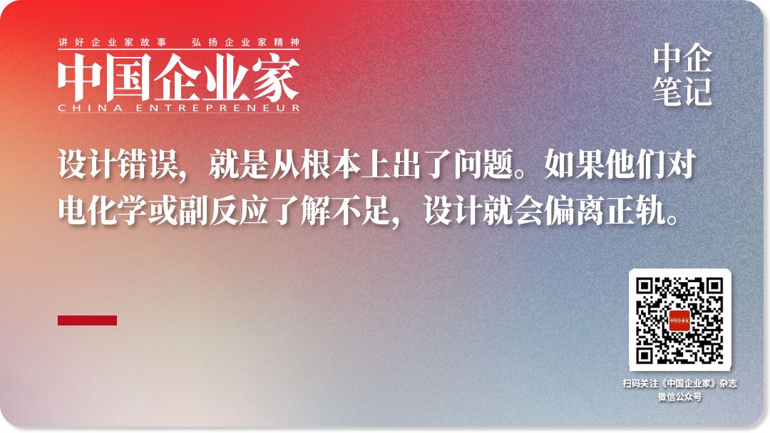 曾毓群:设计错误,就是从根本上出了问题。如果他们对电化学或副反应了解不足,设计就会偏离正轨。他们需要考虑未来的风险。这就是为什么看起来某款电池性能和测试结果都不错,但一旦想要扩大规模,问题就会暴露出来。他们所制定的流程,从未涵盖未来的需要。