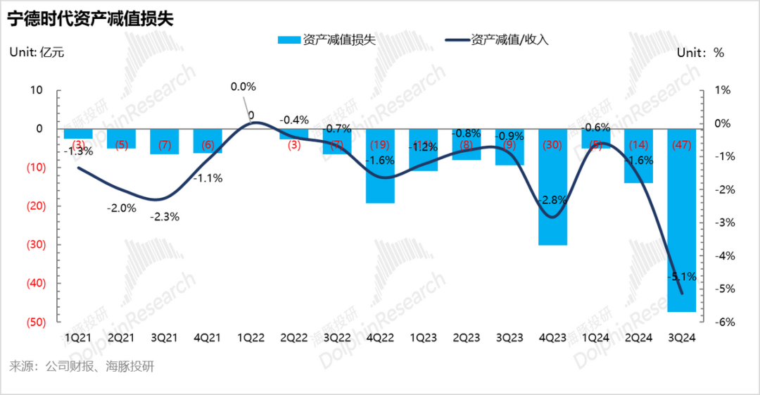 三季度宁王又计提了47亿的资产减值损失,计提的幅度甚至比去年四季度的幅度还要高,市场其实最担心的还是存货减值的高增,尤其是库存产成品/发出商品减值的高增-反应了电池的价格可能还会继续大幅下行。