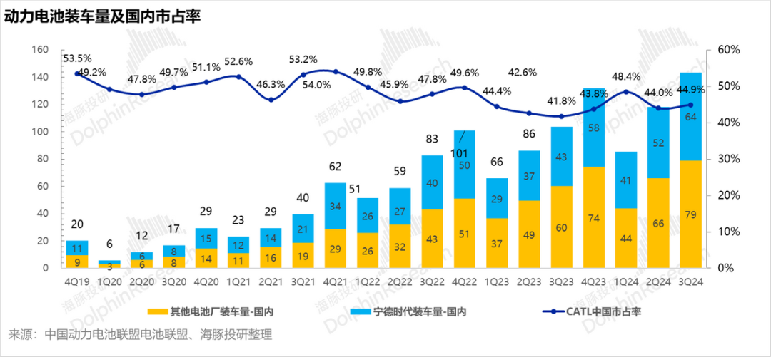 2024年三季度单季收入923亿,虽同比下滑12.5%,但同比下滑的原因主要是基于价格联动机制下,原材料碳酸锂价格的下行传导到电池端单价的下行,实际的出货量仍然同比增长27%,所以海豚君重点关注环比的变化。