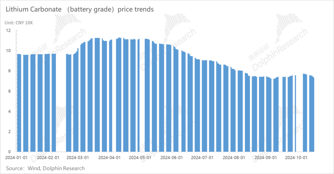 由于本季度宁王自身出货结构变动不大,所以我们的基本判断是本季度电池价格的下行是跟着原材料碳酸锂的价格下行的正常波动,也基本符合目前电池价格的市场走势。