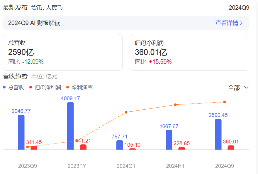 除了竞争对手的加速扩张之外,宁德时代还面临着营收下滑的局面。宁德时代三季度财报显示,前三季度营收约2590.45亿元,同比下降12.09%;净利润约360.01亿元,同比上涨15.59%。