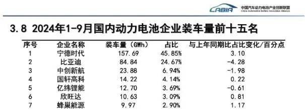 根据中国汽车动力电池产业创新联盟数据显示,今年1月至9月,国内动力电池企业装车量排在前三的玩家,依旧是宁德时代、比亚迪和中创新航。不过,在市占率上,中创新航与宁德时代还相差甚远。