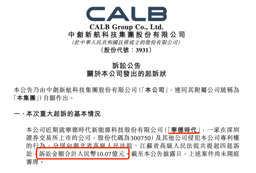 10月18日,中创新航发布公告,披露与宁德时代之间过往专利纠纷的最新进展,并宣布向宁德时代及其他公司发起新的诉讼,索赔金额合计高达10.07亿元。