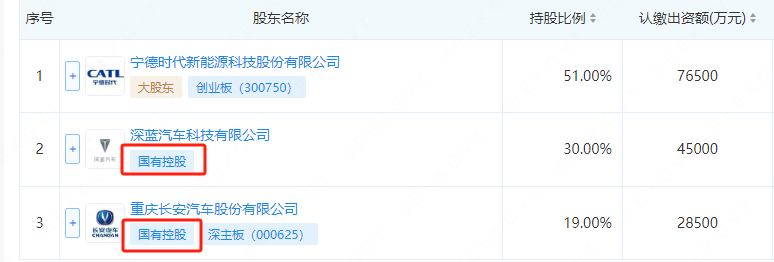 其中,长安汽车与深蓝汽车,都是国有控股企业。
