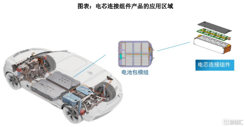 其中,公司的电芯连接组件为应用于新能源汽车等领域的新型电连接组件,具有集成温度传感器和电压信号采集、连接器快速连接、保险丝保护,并避免接线错误、减少装备动作、实现自动化生产及空间紧凑等优点。