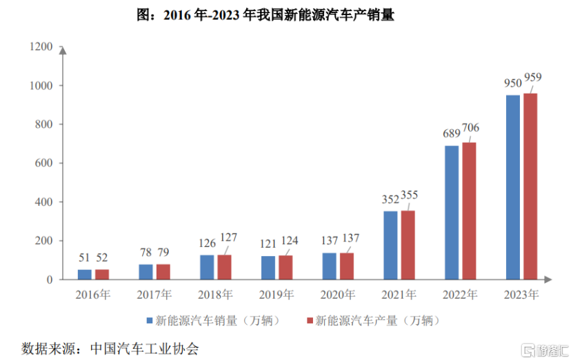 据中国工业汽车协会统计,2023年我国新能源汽车产销量分别达到958.7万辆和949.5万辆,同比分别增长35.8%、37.9%,市场占有率提升至31.6%。