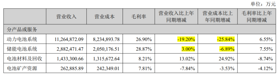 收入下滑主要是由于锂价下行,导致成本端和收入端均同比大幅下滑,这个数据通过半年报来看更直观。