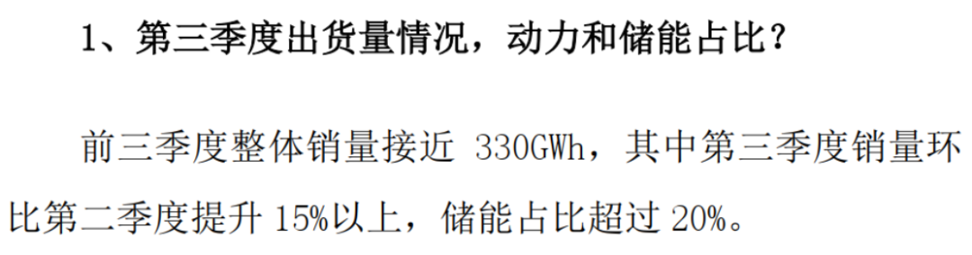 根据宁德时代10月18日公布的投资者调研纪要,前三季度累计销量接近330GWh,而其2023年全年锂离子电池销量390GWh,今年销量再创历史新高板上钉钉。