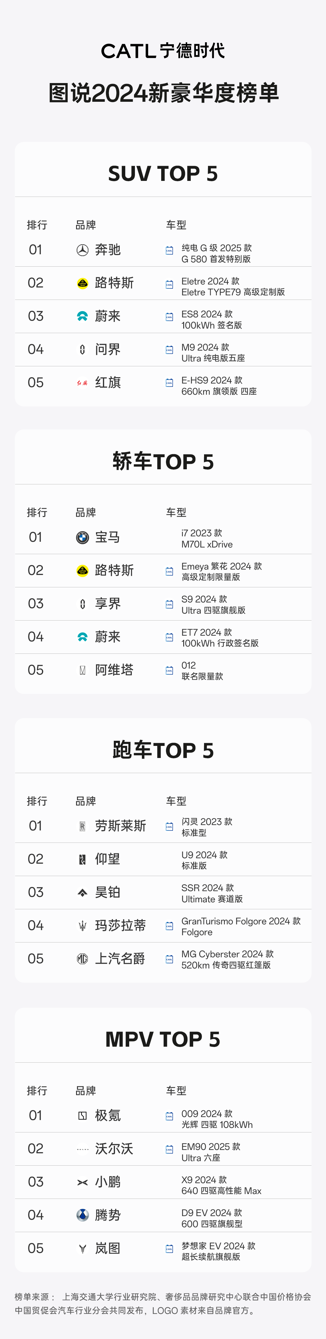 2024年1-10月,宁德时代在高端电动汽车市场份额达63%,累计服务超过222万辆高端汽车。凭借创新的电池技术和可靠的产品质量,宁德时代已成为全球高端电动汽车品牌的首选合作伙伴。