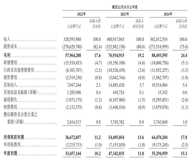 不过,宁德时代的利润端依旧维持了稳定增长,净利润由2022年的334.57亿元增至2023年的473.42亿元,并进一步增长16.8%至2024年的552.29亿元;毛利率也由2022年的17.6%增长6.8个百分点至2024年的24.4%。