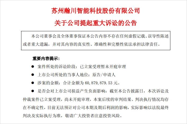 瀚川智能据此提出近6088万元的索赔。