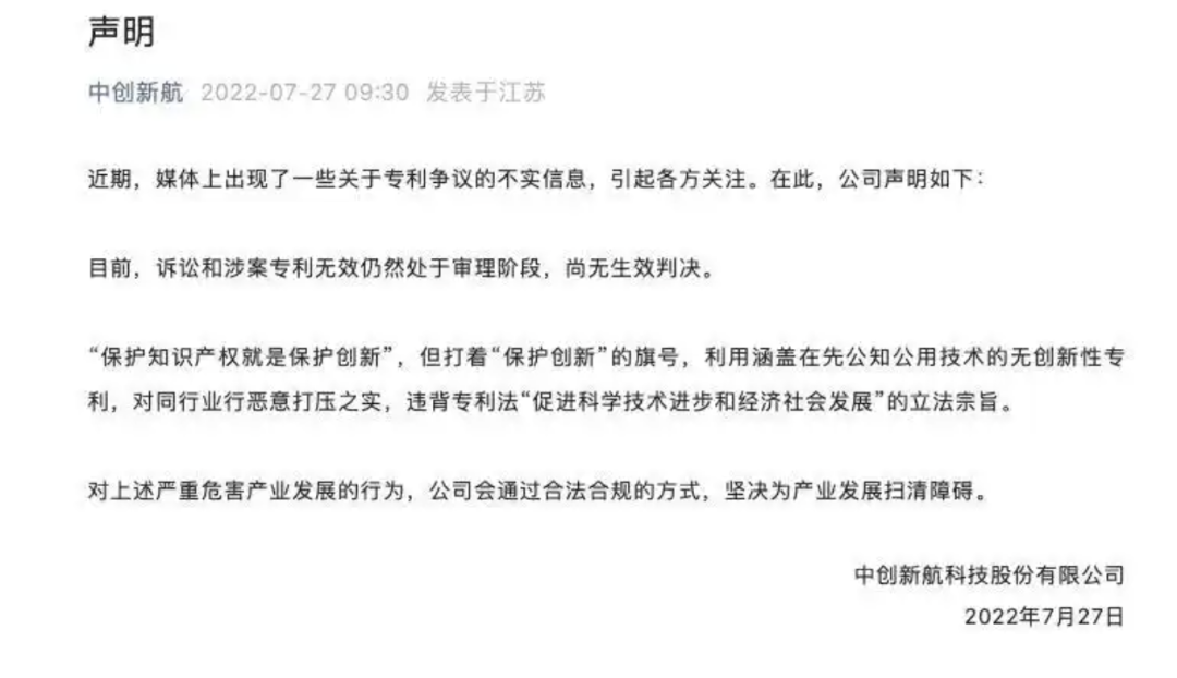 对此,中创新航当日就发布了声明,否认涉嫌侵犯宁德时代知识产权,并认为宁德时代此举是“恶意打压”。