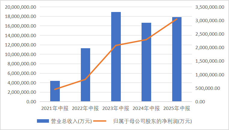 归属于上市公司股东的净利润达到了304.85亿元人民币,与2024年上半年的228.65亿元相比,大幅增长了33.33%。