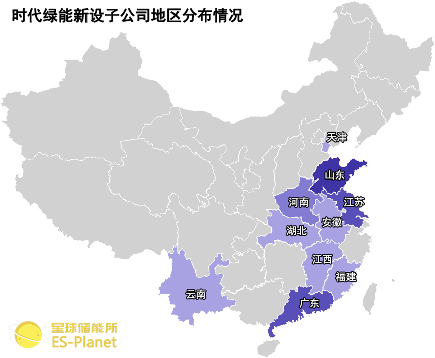参考星球储能所此前统计显示,仅去年上半年(截至2024年6月11日),时代绿能新成立的风、光、碳领域新能源子公司就有20家之多,多数分布在东部沿海地区。