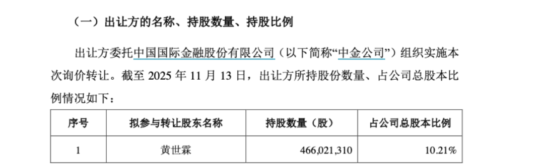 公告称,本次询价转让的受让方为具备相应定价能力和风险承受能力的机构投资者等,出让方委托中金公司组织实施本次询价转让。